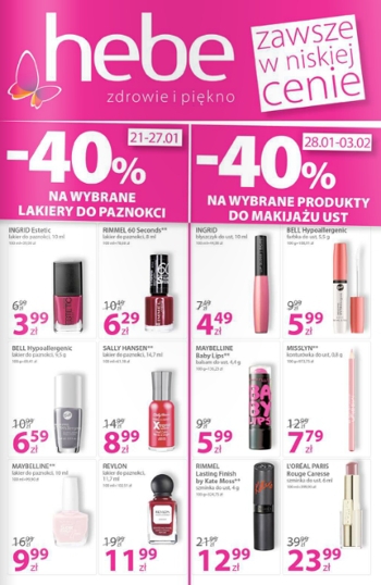 {loadposition linkHebe} Nowa gazetka promocyjna drogerii Hebe - "Zawsze w niskiej cenie". Polecane promocje z gazetki Hebe: Lakier do paznokci Ingrid Estetic 10 ml - 3,99 zł. Lakier do paznokci Rimmel 60 Seconds 8 ml - 6,29 zł. Balsam…