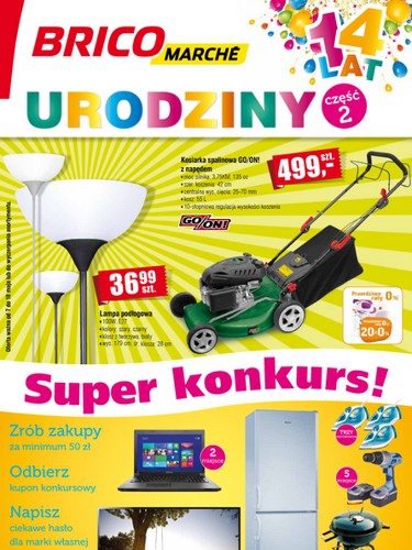 {loadposition linkBricomarche} Nowa gazetka promocyjna Bricomarche - "Urodziny część 2". Polecane promocje z gazetki Bricomarche: Kosiarka spalinowa z napędem GO/ON! - 499 zł. Lampa podłogowa - 36,99 zł. Nożyce do żywopłotu BOSCH - 234 zł. Oferta ważna od…