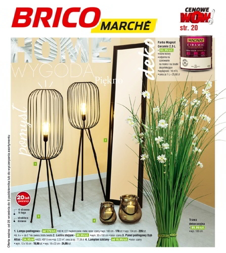 {loadposition linkBricomarche} 'Urządzaj wnętrza z Brico' - nowa gazetka promocyjna sieci sklepów Bricomarche. Polecane promocje z gazetki Bricomarche: Lampa podłogowa - 169 zł*. Panel podłogowy Pinia Grizzly m² - 33,99 zł. Płytka ścienna Green m² - 59,99 zł. *…
