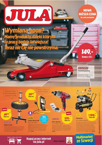 {loadposition linkJula} 'Wymiana opon? Mamy produkty, dzięki którym ta praca będzie łatwiejsza! Teraz nic Cię nie powstrzyma' - nowa gazetka promocyjna sieci handlowej Jula. Polecane promocje z gazetki Jula: Podnośnik garażowy Hamron 2 t - 149 zł. Stojak na…