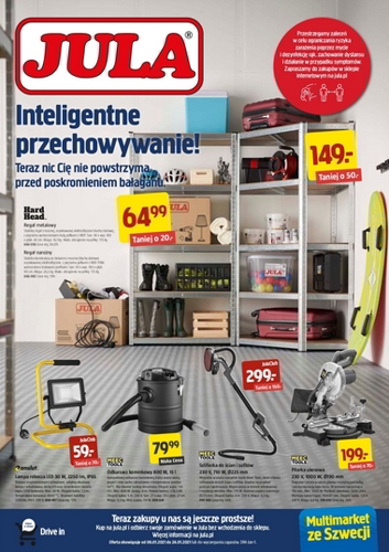 {loadposition linkJula} 'Inteligentne przechowywanie. Teraz nic Cię nie powstrzyma przed poskromieniem bałaganu' - nowa gazetka promocyjna sieci handlowej Jula. Polecane promocje z gazetki Jula: Regał metalowy Hard Head - 64,99 zł. Lampa robocza LED Anslut - 59 zł*. Odkurzacz…