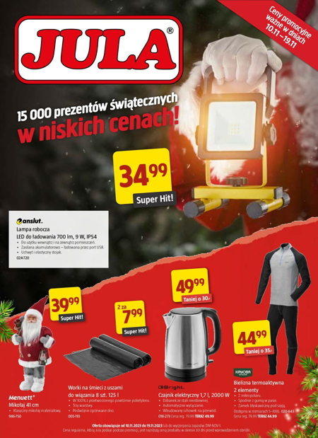'15 000 prezentów świątecznych w niskich cenach!' - nowa gazetka promocyjna sieci marketów Jula. Polecane promocje z gazetki Jula Lampa robocza LED Anslut 700 lm 9 W - 34,99 zł. Klasyczny Mikołaj materiałowy Menuett wys. 41 cm - 39,99…