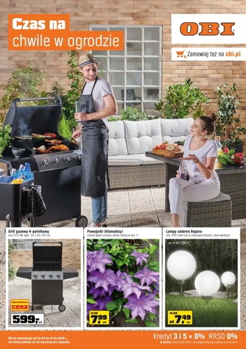{loadposition linkObi} 'Czas na chwile w ogrodzie' - nowa gazetka promocyjna sieci marketów Obi. Polecane promocje z gazetki Obi: Grill gazowy 4-palnikowy - 599 zł. Powojniki w doniczce - 7,99 zł. Lampa solarna Bojano - od 7,49 zł. …