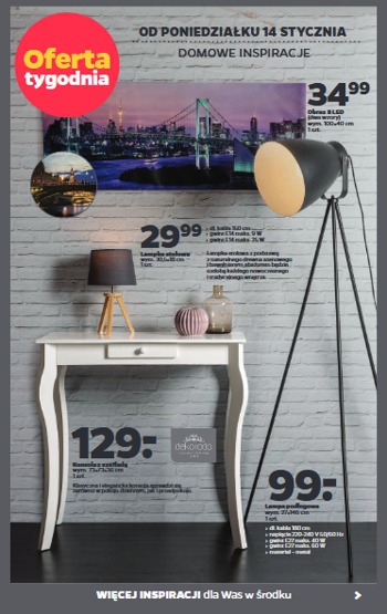{loadposition linkNetto} 'Domowe inspiracje' - nowa gazetka promocyjna sieci sklepów Netto. Polecane promocje z gazetki Netto: Obraz 8 LED 100x40 cm - 34,99 zł. Lampka stołowa - 29,99 zł. Konsola z szufladą Dekorado - 129 zł. Oferta…