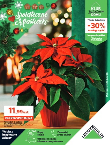 {loadposition linkLeroyMerlin} 'Świąteczne miasteczko' - nowa gazetka promocyjna Leroy Merlin. Polecane promocje z gazetki Leroy Merlin: Poinsecja 4-6-pędowa - 11,99 zł. Bombka szklana ręcznie malowana - 6,99 zł. Lampki wewnętrzne 100 LED - 12,99 zł. Oferta ważna…