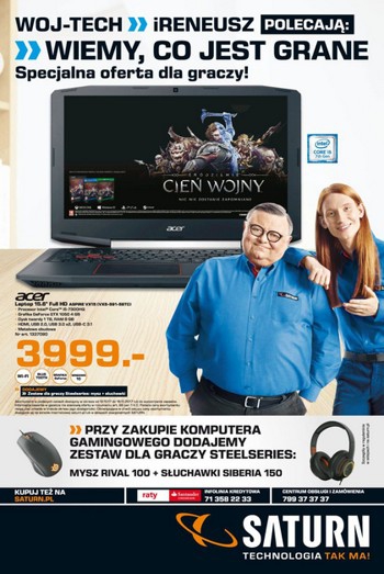 {loadposition linkMediaMarkt} Nowa gazetka promocyjna Saturn ze specjalną ofertą dla graczy - "Wiemy co jest grane". Polecane promocje z gazetki Saturn: Laptop ACER Aspire VX 15 VX5-591-58TC - 3999 zł. Laptop LENOVO Ideapad 510-15IKB 80SV0102PB - 2999 zł. Laptop…