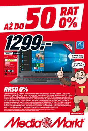 {loadposition linkMediaMarkt} 'Aż do 50 rat 0%' - nowa gazetka promocyjna Media Markt. Polecane promocje z gazetki Media Markt: Laptop ACER Aspire 3 A315-31-C3T4 N3350 - 1299 zł. Laptopy 2w1 HP x2 10-p000nw - 1199 zł. Głośniki LOGITECH Z333…