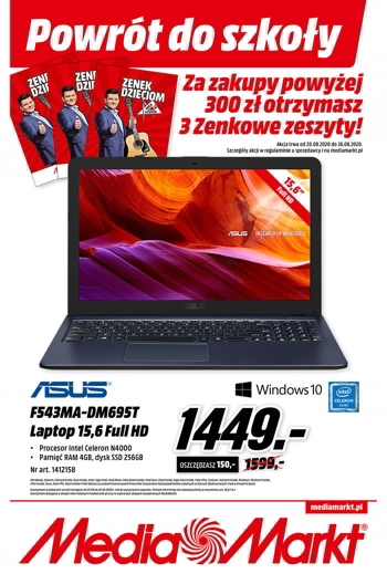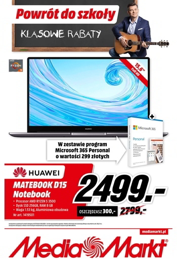 {loadposition linkMediaMarkt2} 'Powrót do szkoły. Klasowe rabaty' - nowa gazetka promocyjna Media Markt. Polecane promocje z gazetki Media Markt: Laptop HUAWEI MateBook D 15 - 2449 zł. Laptop ASUS F543MA-DM695T - 1499 zł. Laptop HP 14s-fq0012nw FHD Athlon Silver…