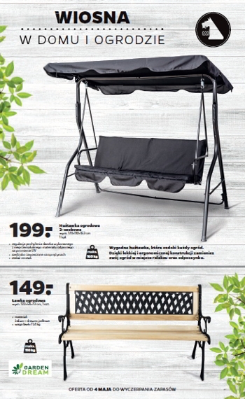 'Wiosna w domu i ogrodzie' - nowa gazetka promocyjna sieci sklepów Netto. Polecane promocje z gazetki Netto: Huśtawka ogrodowa 3-osobowa - 199 zł. Ławka ogrodowa - 149 zł. Huśtawka ogrodowa bocianie gniazdo - 99 zł. Oferta ważna…