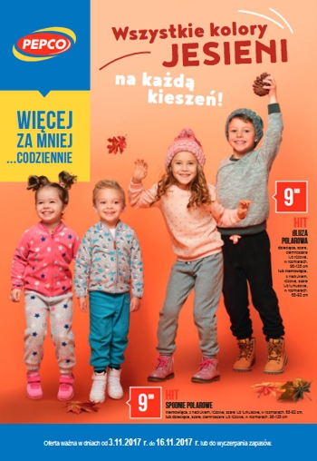 {loadposition linkPepco} Nowa gazetka promocyjna Pepco - "Wszystkie kolory jesieni na każdą kieszeń". Polecane promocje z gazetki Pepco: Bluza polarowa niemowlęca lub dziecięca - 9,99 zł. Spodnie polarowe niemowlęce lub dziecięce - 9,99 zł. Legginsy dziewczęce…