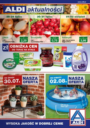 {loadposition linkAldi} Nowa gazetka promocyjna Aldi. Polecane promocje z gazetki Aldi: Koncentrat do płukania tkanin Fee 1,5 L - 5 zł. Chusteczki nawilżane Satessa 150 sztuk - 5 zł. Legginsy damskie - 16,99 zł. Oferta ważna od 30.07…