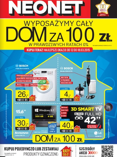 {loadposition linkNeonet} Nowa gazetka promocyjna Neonet - "Wyposażymy cały dom za 100 zł w prawdziwych ratach 0%". Polecane promocje z gazetki Neonet: Pralka Bosch WLG 20265 PL - 1300 zł. Blender Bosch MSM 67170 - 200 zł. Laptop Lenovo…