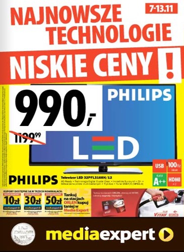 {loadposition linkMediaExpert} Nowa gazetka promocyjna Media Expert - "Najnowsze technologie - niskie ceny!". Polecane promocje z gazetki Media Expert: Telewizor LED 32" PHILIPS 32PFL3168H/12 - 990 zł. Telewizor LED 42" LG 42LN5400 - 1549 zł. Notebook HP 2000-2D02SW -…