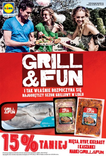 {loadposition linkLidl} Nowa gazetka promocyjna Lidl - "Grill&Fun i tak właśnie rozpoczyna się najgorętszy sezon grillowy w Lidlu". Polecane promocje z gazetki Lidl: Karkówka wieprzowa 660 g - 7,99 zł. Żeberka wieprzowe 1 kg - 16,99 zł. Szaszłyk drobiowy…
