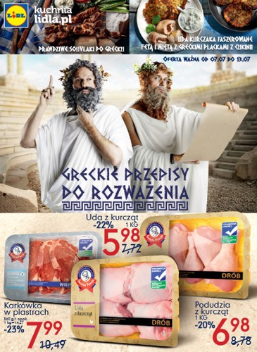 {loadposition linkLidl} Nowa gazetka promocyjna Lidl - "Greckie przepisy do rozważenia". Polecane promocje z gazetki Lidl: Karkówka w plastrach 560 g - 7,99 zł. Uda z kurcząt 1 kg - 5,98 zł. Podudzia z kurcząt 1 kg - 6,98…