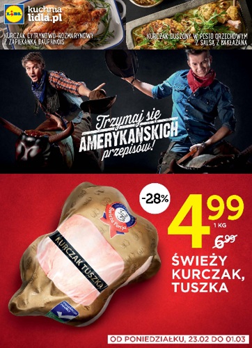 {loadposition linkLidl} Nowa gazetka promocyjna Lidl - "Trzymaj się amerykańskich przepisów!". Polecane promocje z gazetki Lidl: Świeży kurczak tuszka 1 kg - 4,99 zł. Jogurt w stylu amerykańskim 150 g - 1,33 zł. Shake mleczny 250 ml - 1,77…