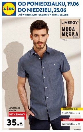{loadposition linkLidl} Nowa gazetka promocyjna Lidl - "Moda męska". Polecane promocje z gazetki sklepów Lidl: Bawełniana koszula - 35 zł. Jeansowe bermudy - 33 zł. Skórzane mokasyny - 69,90 zł. Oferta ważna od 19.06…