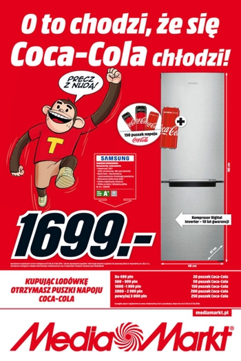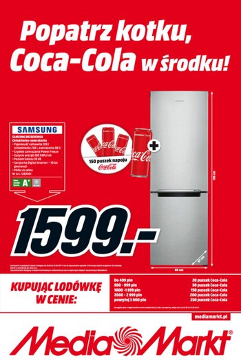 {loadposition linkMediaMarkt} Nowa gazetka promocyjna Media Markt - "Odkryj w sobie kibica!". Polecane promocje z gazetki Media Markt: Lodówka SAMSUNG RB30J3215SS + 100 puszek Coca-Coli - 1799 zł. Lodówka BEKO DSA 25020 + 50 puszek Coca-Coli - 889 zł.…