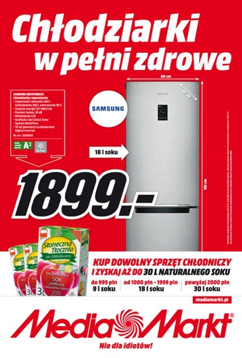{loadposition linkMediaMarkt} Nowa gazetka promocyjna Media Markt - "Chłodziarki w pełni zdrowe". Polecane promocje z gazetki Media Markt: Lodówka SAMSUNG RB31FERNCSS - 1899 zł. Lodówka MPM 320-KB-03 - 999 zł. Lodówka BEKO CS 226020 X - 1149 zł. …