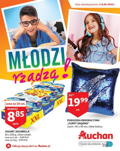 {loadposition linkAuchan} 'Młodzi rządzą' - nowa gazetka promocyjna sieci marketów Auchan. Polecane promocje z gazetki Auchan: Jogurt Jogobella 10x150 g - 8,85 zł. Poduszka dekoracyjna Flippy Sequins 40x40 cm - 19,99 zł. Lody rożki Kaktus 110 ml - 2,59…
