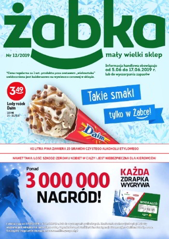 'Takie smaki tylko w Żabce' - nowa gazetka promocyjna sieci sklepów Żabka. Polecane promocje z gazetki Żabka: Lody rożek Daim 110 ml - 3,49 zł. Lody Maltesers 90 ml - 4,99 zł. Lody Magnum Brownie 75 ml -…