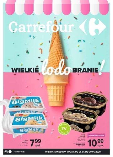 'Wielkie lodobranie!' - nowa gazetka promocyjna sieci marketów Carrefour. Polecane promocje z gazetki Carrefour: Lody Big Milk 1 L - 7,99 zł. Lody Grycan 900 ml - 10,99 zł. Lody Breyers 465 ml - 16,99 zł. …