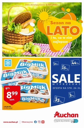 {loadposition linkAuchan2} 'Sezon na lato i to, co w nim najlepsze' - nowa gazetka promocyjna sieci supermarketów Auchan. Polecane promocje z gazetki Auchan: Lody Big Milk 1 L - 8,99 zł. Napój izotoniczny Oshee 750 ml - 1,89 zł.…