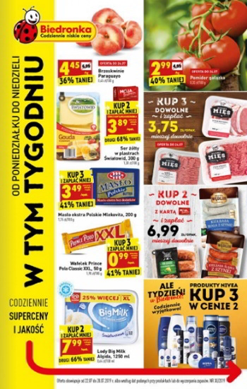 'W tym tygodniu' - nowa gazetka promocyjna sieci sklepów Biedronka. Polecane promocje z gazetki sieci Biedronka: Pomidory gałązka 1 kg - 2,99 zł. Lody Big Milk Algida 2x1250 ml - 15,98 zł. Ser żółty Gouda Światowid 2x300 g…