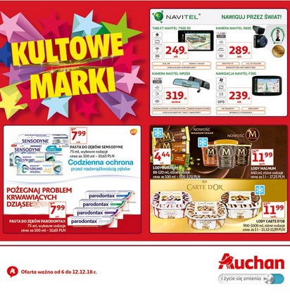 {loadposition linkAuchan} 'Kultowe marki' - nowa gazetka promocyjna sieci marketów Auchan. Polecane promocje z gazetki Auchan: Tablet Navitel T500 3G - 249 zł. Pasta do zębów Sensodyne 75 ml - 7,99 zł. Lody Magnum różne rodzaje - 4,44 zł.…