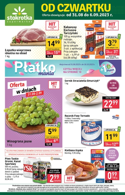 Nowa gazetka promocyjna sieci sklepów Stokrotka. Polecane promocje z gazetki Stokrotka: Łopatka wieprzowa idealna na obiad 1 kg - 13,99 zł*. Winogrona jasne 1 kg - 5,99 zł**. Szynka od szwagra Krakus 100 g - 2,99 zł. *…