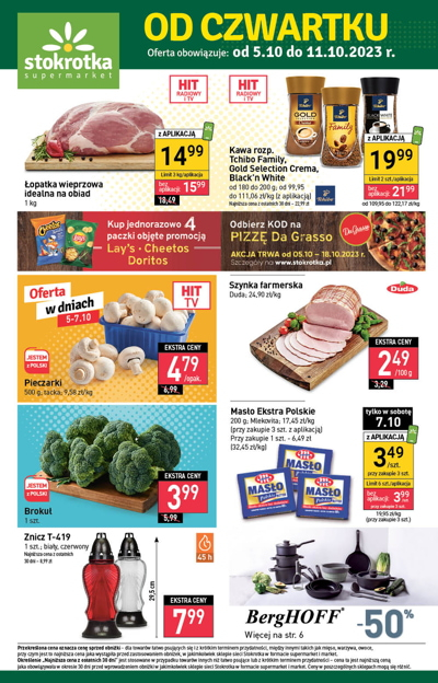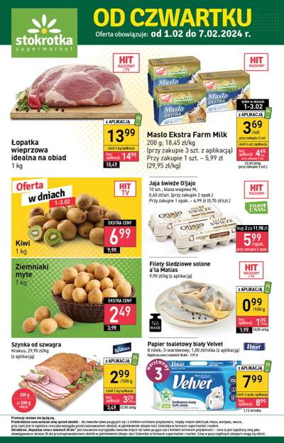 'Od czwartku' - nowa gazetka promocyjna sieci sklepów Stokrotka. Polecane promocje z gazetki Stokrotka: Łopatka wieprzowa idealna na obiad 1 kg - 13,99 zł*. Masło ekstra Farm Milk 200 g - 3,69 zł**. Ziemniaki myte 1 kg - 2,49…