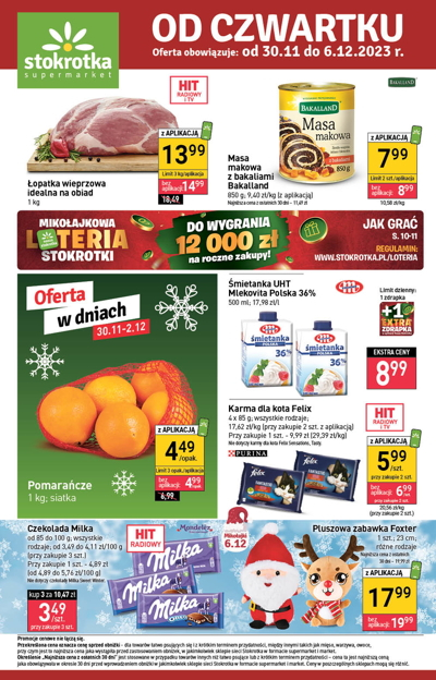 'Od czwartku' - nowa gazetka promocyjna sieci sklepów Stokrotka. Polecane promocje z gazetki Stokrotka: Łopatka wieprzowa idealna na obiad 1 kg - 13,99 zł*. Masa makowa z bakaliami Bakalland 850 g - 7,99 zł**. Śmietanka Polska Mlekovita 500 ml…