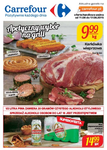 {loadposition linkCarrefour} Nowa gazetka promocyjna sieci handlowej Carrefour - "Apetyczny wybór na grill". Polecane promocje z gazetki Carrefour: Karkówka wieprzowa bez kości 1 kg - 9,99 zł. Piwo Kasztelan Niepasteryzowane 8x500 ml - 14,99 zł. Łosoś świeży 1 kg…