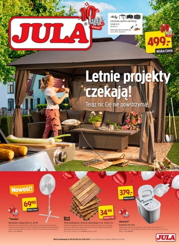 {loadposition linkJula} 'Letnie projekty czekają! Teraz nic Cię nie powstrzyma!' - nowa gazetka promocyjna sieci handlowej Jula. Polecane promocje z gazetki Jula: Luksusowy pawilon ogrodowy Axley - 499 zł. Wentylator stojący Anslut 40 W - 69,90 zł. Kostkarka do…