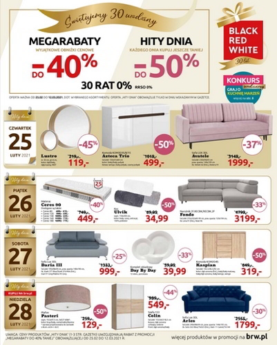 {loadposition linkBRW} 'Świętujemy 30. urodziny' - nowa gazetka promocyjna sieci sklepów meblowych Black Red White. Polecane promocje z gazetki Black Red White: Lustro śr. 50 cm - 119 zł. Komoda Azteca Trio - 499 zł. Sofa Avatele LUX 3DL…