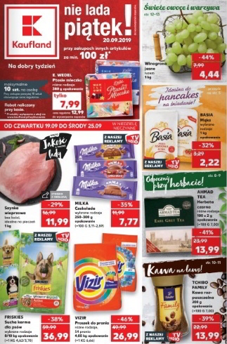 Nowa gazetka promocyjna sieci marketów Kaufland. Polecane promocje z gazetki Kaufland: Winogrona jasne 1 kg - 4,44 zł. Mąka Basia 1 kg - 2,22 zł. Herbata czarna Ahmad Tea 100 saszetek - 13,99 zł. …
