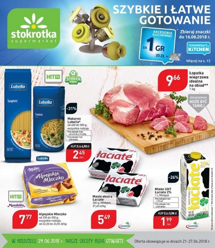 'Szybkie i łatwe gotowanie' - nowa gazetka promocyjna sieci sklepów Stokrotka. Polecane promocje z gazetki Stokrotka: Makaron Lubella wszystkie rodzaje 2 opakowania - 4,90 zł. Alpejskie Mleczko Milka wszystkie rodzaje - 7,77 zł. Łopatka wieprzowa idealna na obiad 1…