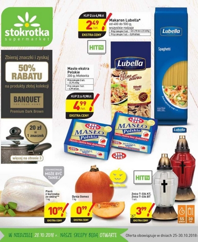 'Zbieraj znaczki i zyskaj 50% rabatu na produkty złotej kolekcji Banquet Premium Dark Brown' - nowa gazetka promocyjna sieci sklepów Stokrotka. Polecane promocje z gazetki Stokrotka: Makaron Lubella 2 opakowania - 4,98 zł. Masło Ekstra Polskie Mlekovita…