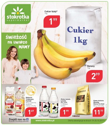 Nowa gazetka promocyjna sieci sklepów Stokrotka - "Świeżość na uwadze mamy". Polecane promocje z gazetki Stokrotka: Cukier biały 1 kg - 1,99 zł. Banany 1 kg - 2,99 zł. Makaron Tradycyjny Polmak 250 g - 1,69 zł.…