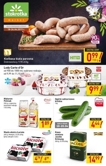 Nowa gazetka promocyjna sieci sklepów Stokrotka. Polecane promocje z gazetki Stokrotka: Kiełbasa biała parzona Dobrowolscy 100 g - 0,99 zł. Makaron Polmak 250 g - 1,89 zł. Ogórki szklarniowe krótkie 1 kg - 4,44 zł. …