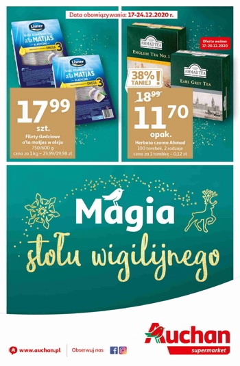 {loadposition linkAuchan3} 'Magia stołu wigilijnego' - nowa gazetka promocyjna sieci supermarketów Auchan. Polecane promocje z gazetki Auchan: Filety śledziowe a'la matjas w oleju Lisner 700 g - 17,99 zł. Herbata czarna Ahmad 100 torebek - 11,70 zł. Makowiec 450…