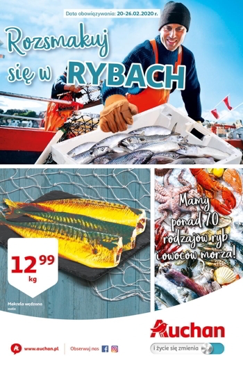 {loadposition linkAuchan} 'Rozsmakuj się w rybach' - nowa gazetka promocyjna sieci marketów Auchan. Polecane promocje z gazetki Auchan: Makrela wędzona 1 kg - 12,99 zł. Polędwica z tuńczyka 1 kg - 58,99 zł. Polędwica duża z dorsza…