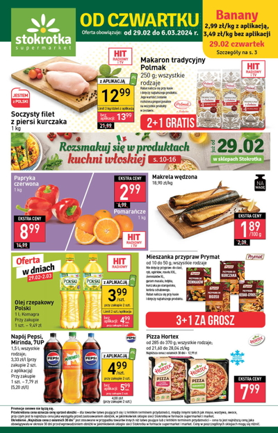 'Od czwartku' - nowa gazetka promocyjna sieci sklepów Stokrotka. Polecane promocje z gazetki Stokrotka: Soczysty filet z piersi kurczaka 1 kg - 12,99 zł*. Papryka czerwona 1 kg - 8,99 zł. Makrela wędzona 100 g - 1,89 zł. …