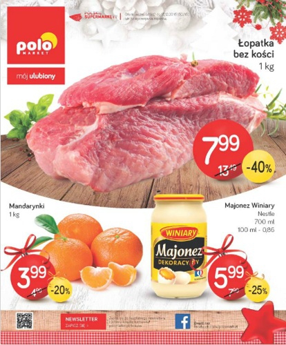{loadposition linkPoloMarket} Nowa gazetka promocyjna Polo Market. Polecane promocje z gazetki Polo Market: Łopatka bez kości 1 kg - 7,99 zł. Mandarynki 1 kg - 3,99 zł. Majonez Dekoracyjny Winiary 700 ml - 5,99 zł. Oferta ważna od…