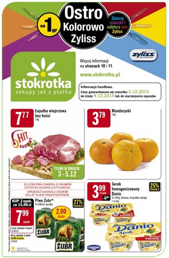 Nowa gazetka promocyjna sieci handlowej Stokrotka. Polecane promocje z gazetki Stokrotka: Łopatka wieprzowa bez kości 1 kg - 7,77 zł. Mandarynki 1 kg - 3,79 zł. Piwo Żubr 8x500 ml - 15,98 zł. Oferta ważna od 3.12…