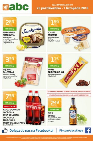 Nowa gazetka promocyjna sieci sklepów ABC. Polecane promocje z gazetki ABC: Margaryna Smakowita różne rodzaje - 2,89zł. Wędlina Balcerzak 100 g - 3,39 zł. Wafel Prince Polo XXL 50 g - 1,15 zł. Oferta ważna…