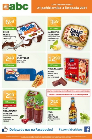 Nowa gazetka promocyjna sieci sklepów ABC. Polecane promocje z gazetki ABC: Margaryna Smakowita ze swojskim masełkiem 450 g - 2,99 zł. Serek homogenizowany Danio 140 g - 1,29 zł. Napój Tymbark 1 L - 2,19 zł. …