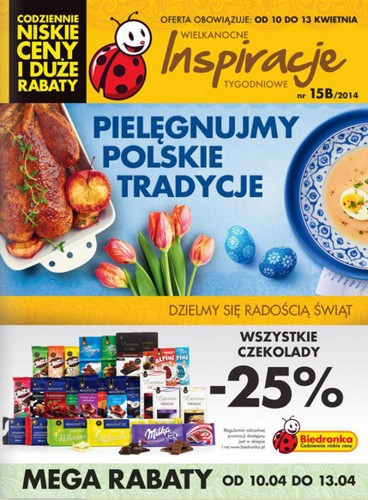 {loadposition linkBiedronka} Nowa gazetka promocyjna sieci handlowej Biedronka - "Wielkanocne inspiracje tygodniowe". Polecane promocje z gazetki sieci Biedronka: Winogrona różowe 1 kg - 5,99 zł. Pasztetowa z Wędzarni Kraina Wędlin 1 kg - 9,90 zł. Margaryna Tortowa 250 g…