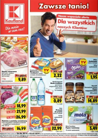 {loadposition linkKaufland} Nowa gazetka promocyjna marketu Kaufland - "Nasze wspaniała oferta dla wszystkich naszych klientów". Polecane promocje z gazetki Kaufland: Szynka wieprzowa bez kości 1 kg - 9,89 zł. Margaryna Smakowita 500 g - 2,22 zł. Czekolada Milka…