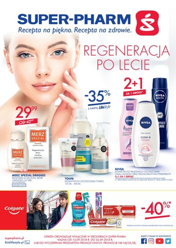 'Regeneracja po lecie' - nowa gazetka promocyjna Super-Pharm. Polecane promocje z gazetki Super-Pharm: Merz Spezial Drages 60 tabletek - 29,99 zł. Maska do włosów Biovax 250 ml - 12,99 zł. Żel pod prysznic Yope 400 ml - 12,99 zł.…